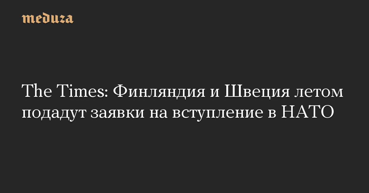 Финляндия, по данным The Times, уже в июне 2022 года подаст заявку на вступление в НАТО. Вслед за ней, пишет британская газета, о намерении вступить в Североатлантический Альянс объявит и Швеция.