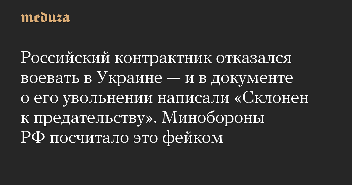 Российский контрактник отказался воевать в Украине — и в документе о его увольнении написали «Склонен к предательству». Минобороны РФ посчитало это фейком