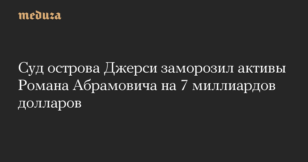 Королевский суд на острове Джерси заблокировал активы миллиардера Романа Абрамовича на семь миллиардов долларов, сообщает Bloomberg, ссылаясь на заявление местных властей.