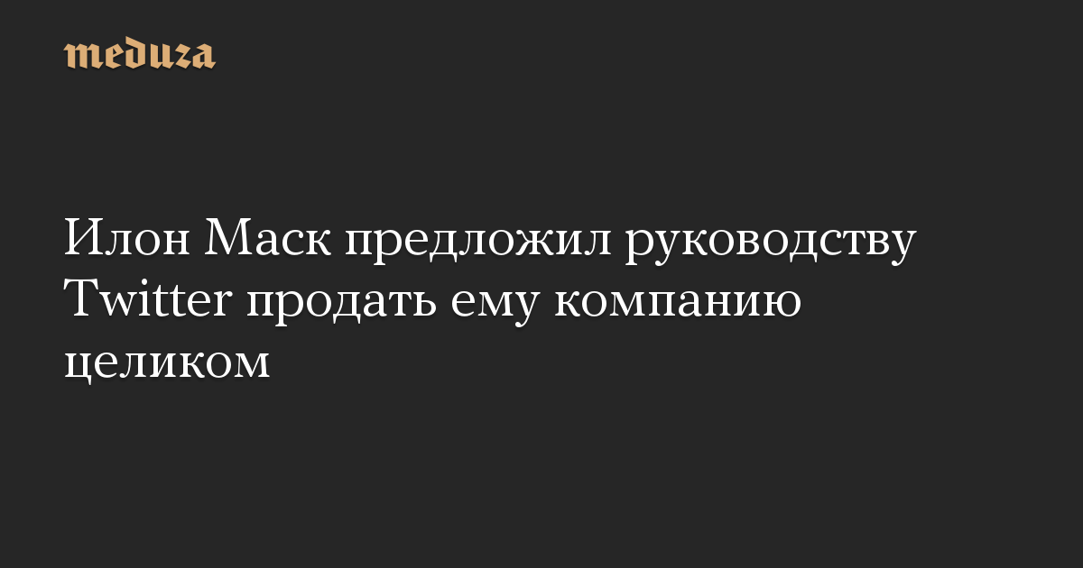 Илон Маск предложил руководству Twitter продать ему компанию целиком