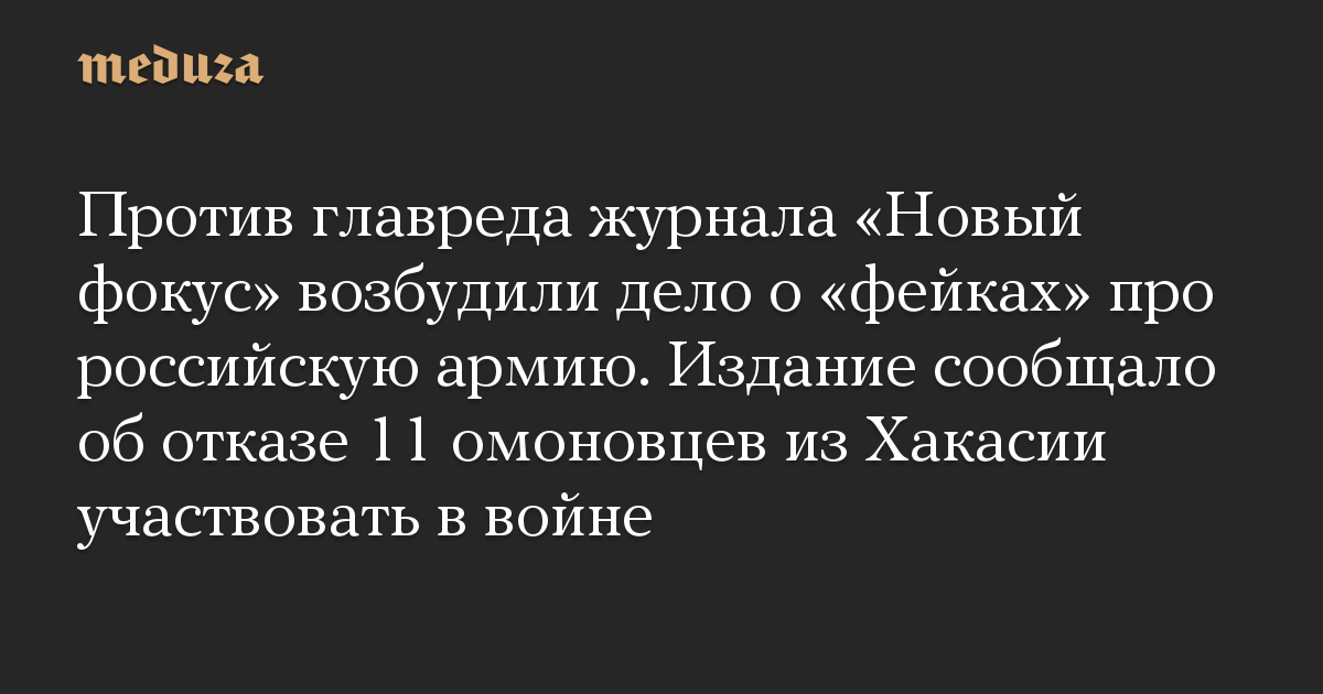 Против главреда журнала «Новый фокус» возбудили дело о «фейках» про российскую армию. Издание сообщало об отказе 11 омоновцев из Хакасии участвовать в войне