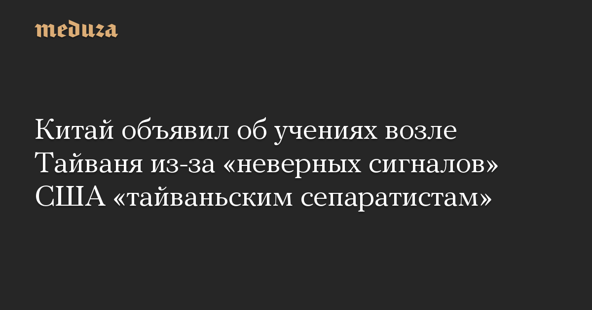 Китай объявил об учениях возле Тайваня из-за «неверных сигналов» США «тайваньским сепаратистам»