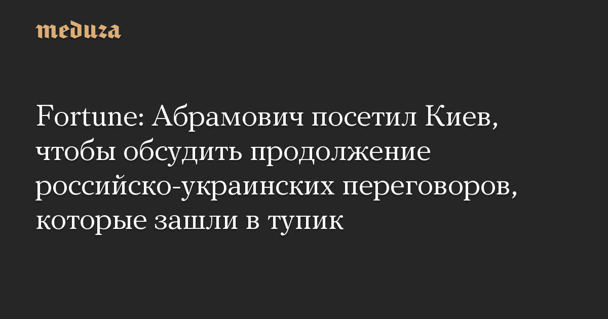 Fortune: Абрамович посетил Киев, чтобы обсудить продолжение российско-украинских переговоров, которые зашли в тупик