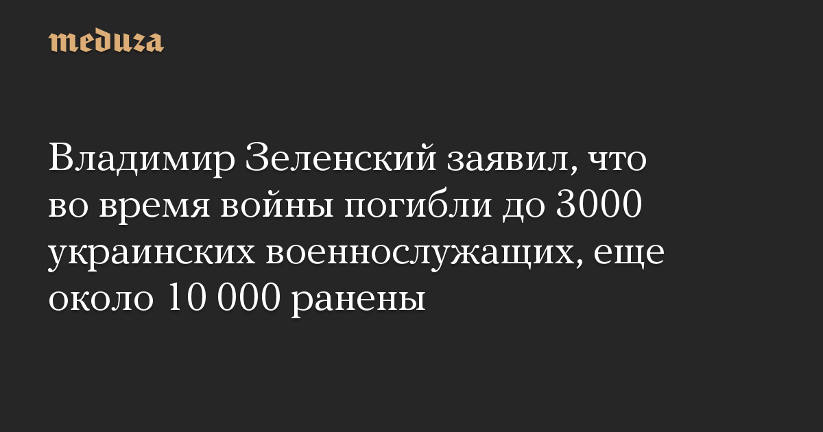 Владимир Зеленский заявил, что во время войны погибли до 3000 украинских военнослужащих, еще около 10 000 ранены