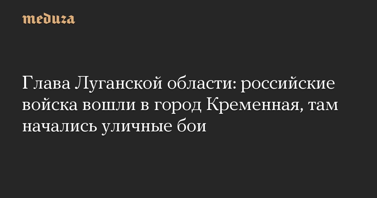 Глава Луганской области: российские войска вошли в город Кременная, там начались уличные бои