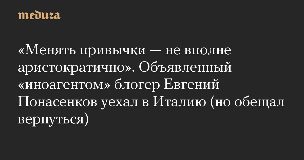 «Менять привычки — не вполне аристократично». Объявленный «иноагентом» блогер Евгений Понасенков уехал в Италию (но обещал вернуться)