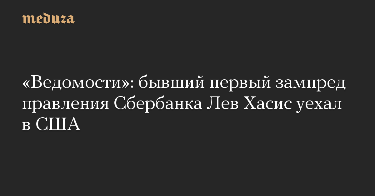 Лев Хасис, до недавнего времени занимавший должность первого заместителя председателя правления «Сбера», уехал в США. Об этом рассказали три источника «Ведомостей». Четвертый собеседник издания заявил, что Хасис находится за пределами РФ.