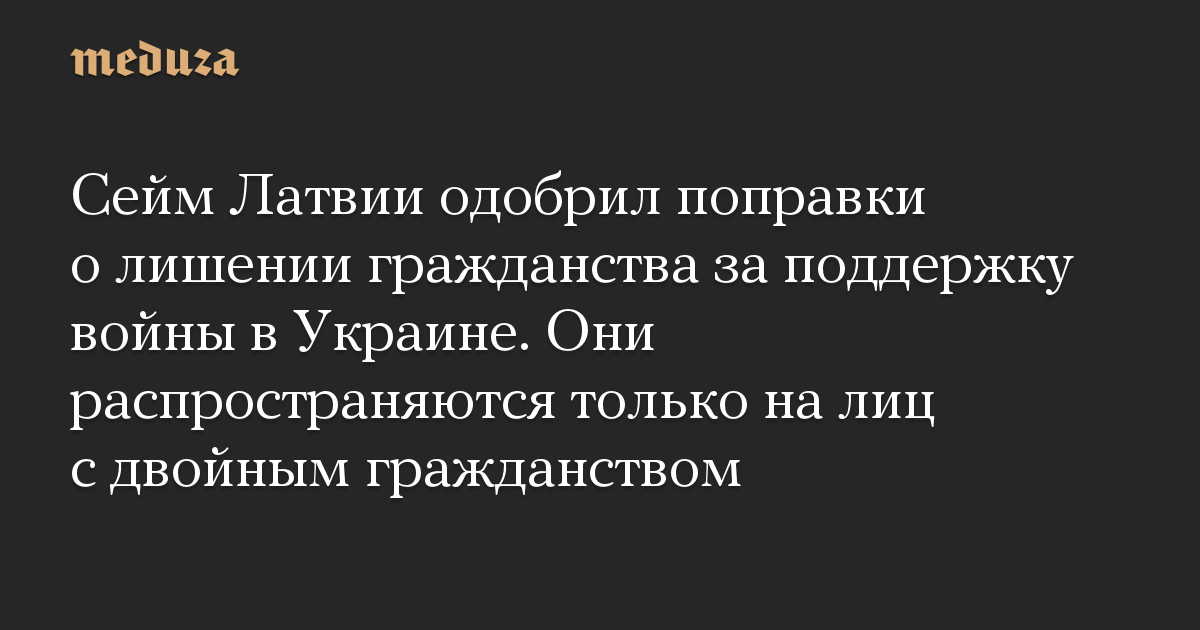 Сейм Латвии одобрил поправки о лишении гражданства за поддержку войны в Украине. Они распространяются только на лиц с двойным гражданством
