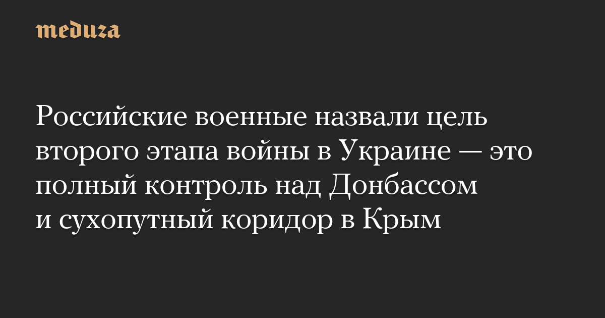 Российские военные назвали цель второго этапа войны в Украине — это полный контроль над Донбассом и сухопутный коридор в Крым