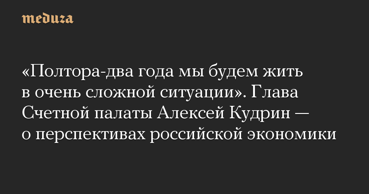 «Полтора-два года мы будем жить в очень сложной ситуации». Глава Счетной палаты Алексей Кудрин — о перспективах российской экономики