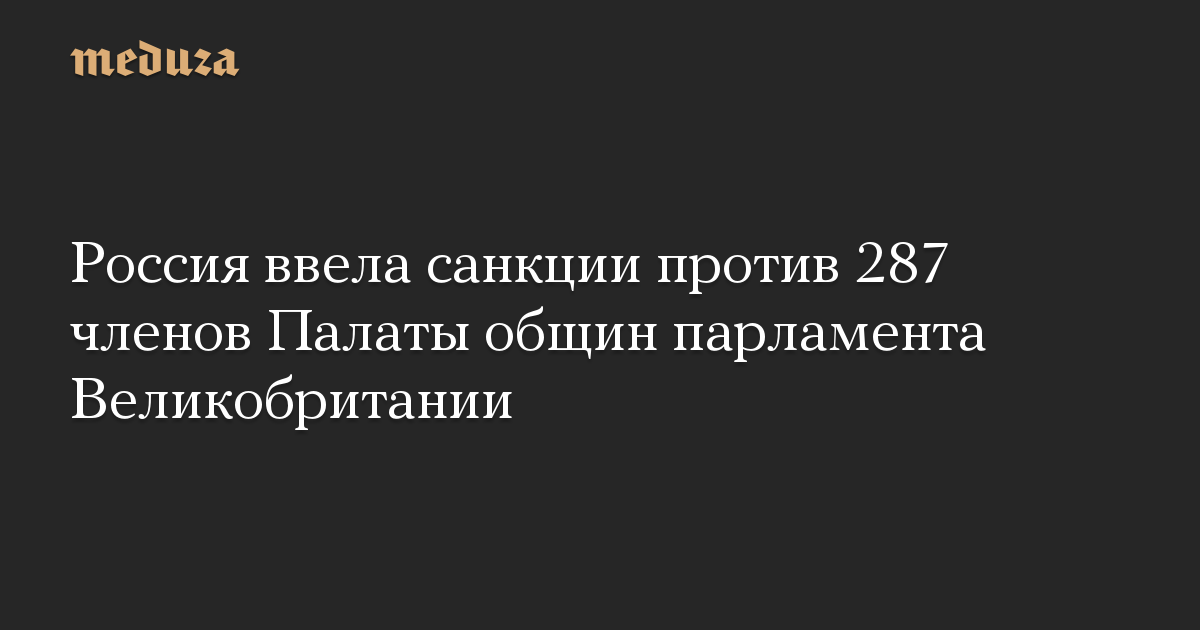Россия ввела санкции против 287 членов Палаты общин парламента Великобритании