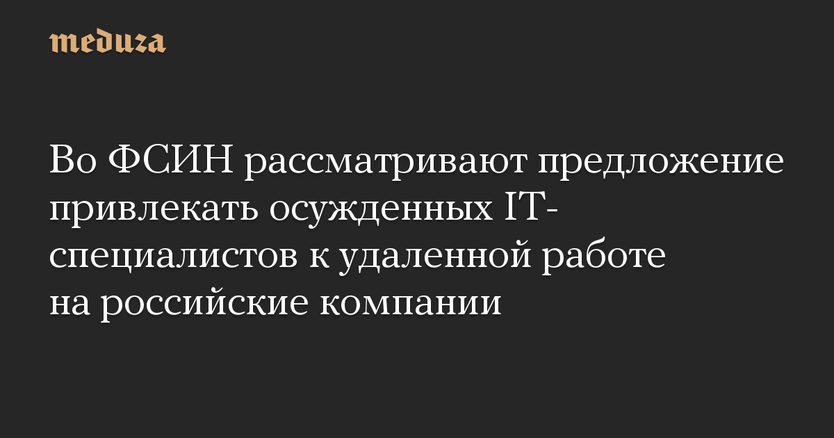 Во ФСИН рассматривают предложение привлекать осужденных IT-специалистов к удаленной работе на российские компании