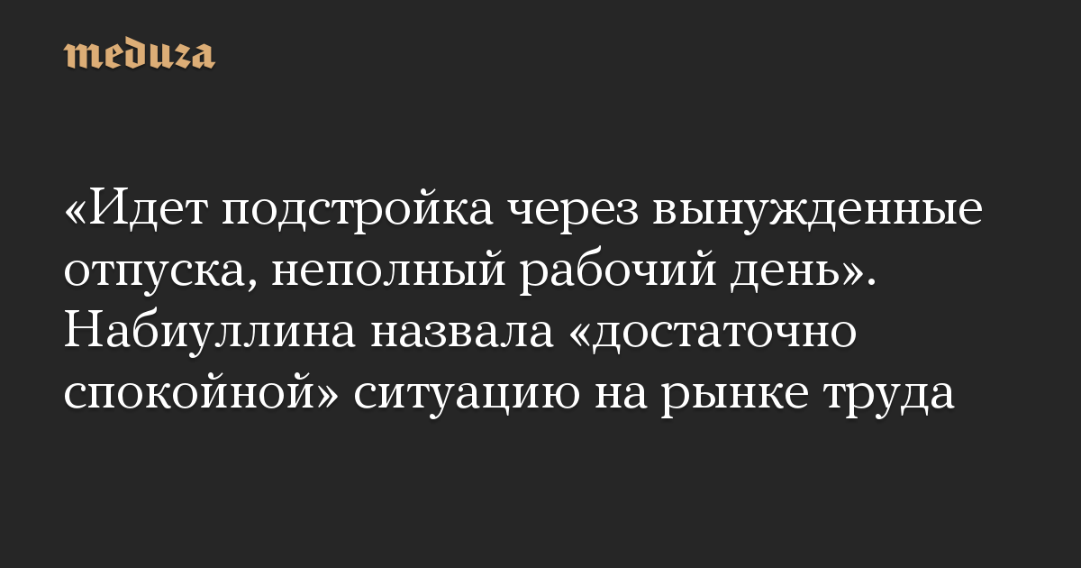 «Идет подстройка через вынужденные отпуска, неполный рабочий день». Набиуллина назвала «достаточно спокойной» ситуацию на рынке труда