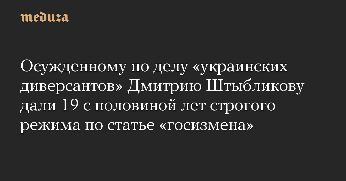 Осужденному по делу «украинских диверсантов» Дмитрию Штыбликову дали 19 с половиной лет строгого режима по статье «госизмена»
