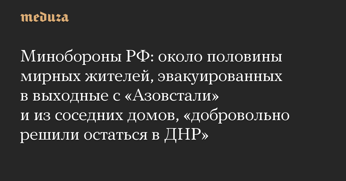 Минобороны РФ: около половины мирных жителей, эвакуированных в выходные с «Азовстали» и из соседних домов, «добровольно решили остаться в ДНР»