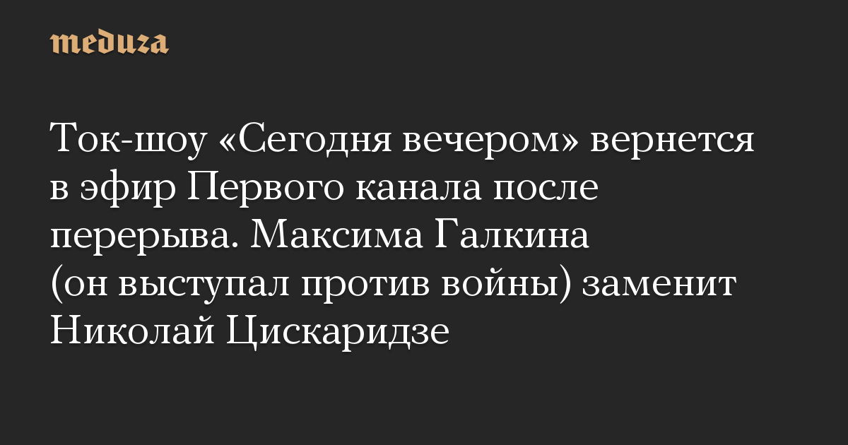 Ток-шоу «Сегодня вечером» вернется в эфир Первого канала после перерыва. Максима Галкина (он выступал против войны) заменит Николай Цискаридзе