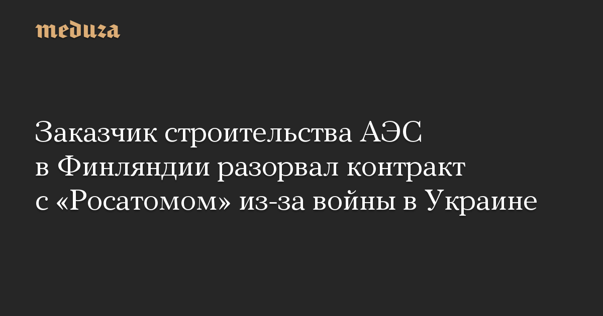Финская компания Fennovoima объявила о расторжении контракта с «Росатомом» на строительство АЭС «Ханхикиви-1». В заявлении компании причиной такого решения названы «значительные задержки» и неспособность компании «РАОС Проект» — структуры «Росатома» — завершить строительство. В пресс-релизе также говорится о дополнительных рисках для реализации проекта, созданных войной в Украине, купировать которые «РАОС Проект» не в состоянии.