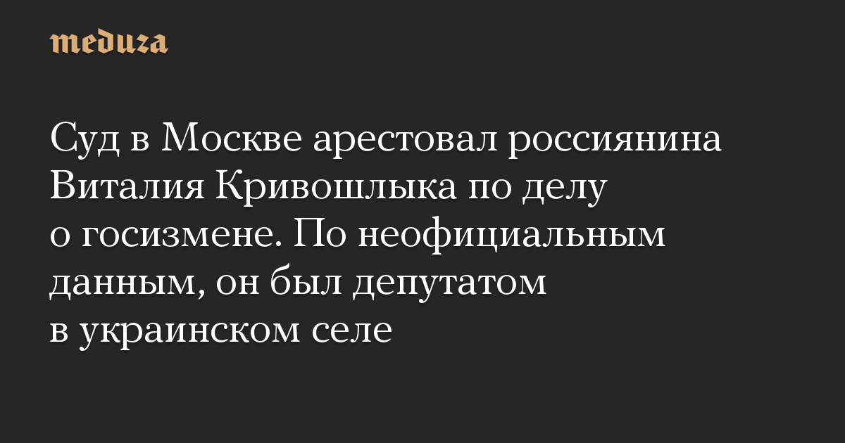 Суд в Москве арестовал россиянина Виталия Кривошлыка по делу о госизмене. По неофициальным данным, он был депутатом в украинском селе