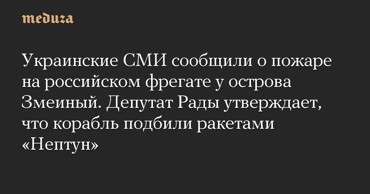 Украинские СМИ сообщили о пожаре на российском фрегате у острова Змеиный. Депутат Рады утверждает, что корабль подбили ракетами «Нептун»
