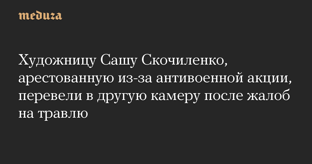 Художницу Сашу Скочиленко, арестованную из-за антивоенной акции, перевели в другую камеру после жалоб на травлю