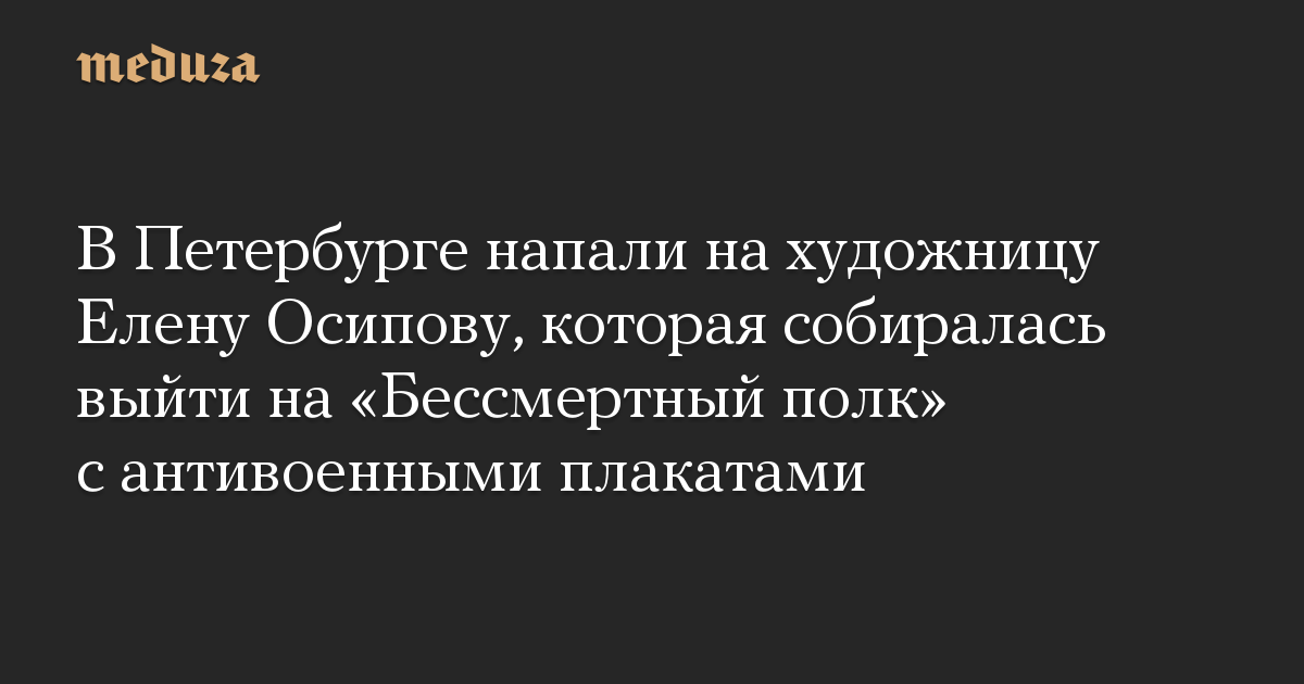 В Петербурге напали на художницу Елену Осипову, которая собиралась выйти на «Бессмертный полк» с антивоенными плакатами