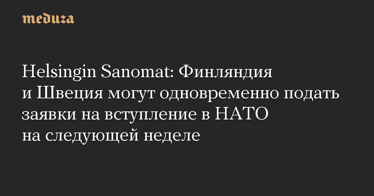 Власти Финляндии и Швеции рассматривают возможность одновременно подать заявки на вступление в НАТО, сообщила 10 мая крупнейшая финляндская газета Helsingin Sanomat со ссылкой на источники. Это может произойти уже в начале следующей недели.