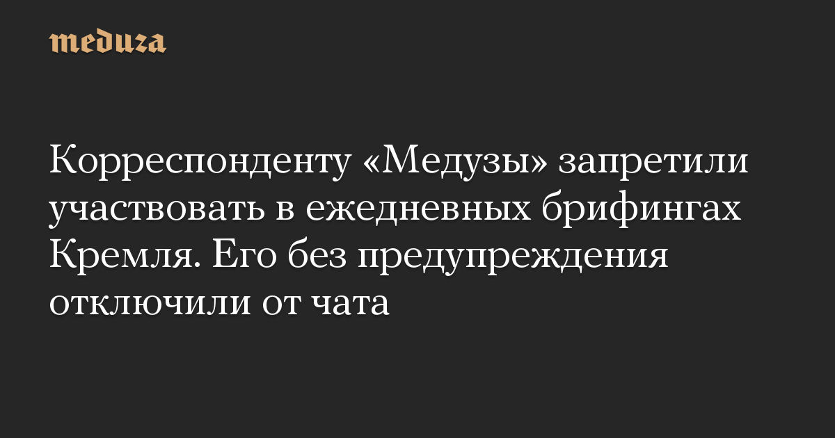 Корреспондента «Медузы» исключили из пула журналистов, которые участвуют в ежедневных телефонных брифингах пресс-секретаря президента РФ Дмитрия Пескова.