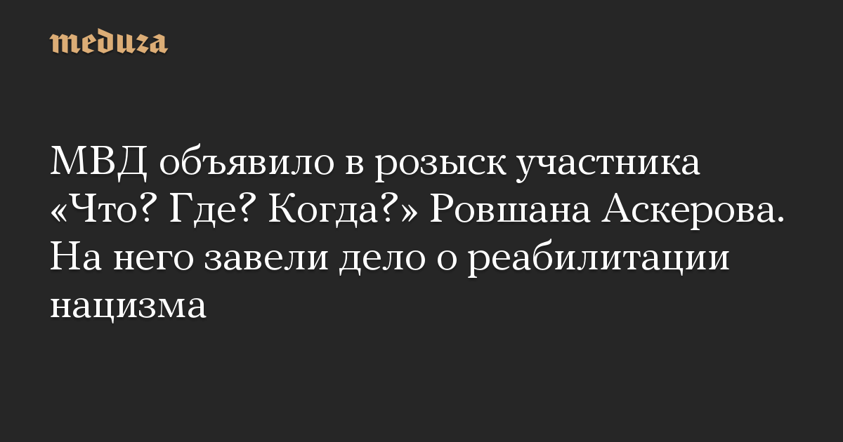 МВД объявило в розыск участника «Что? Где? Когда?» Ровшана Аскерова. На него завели дело о реабилитации нацизма