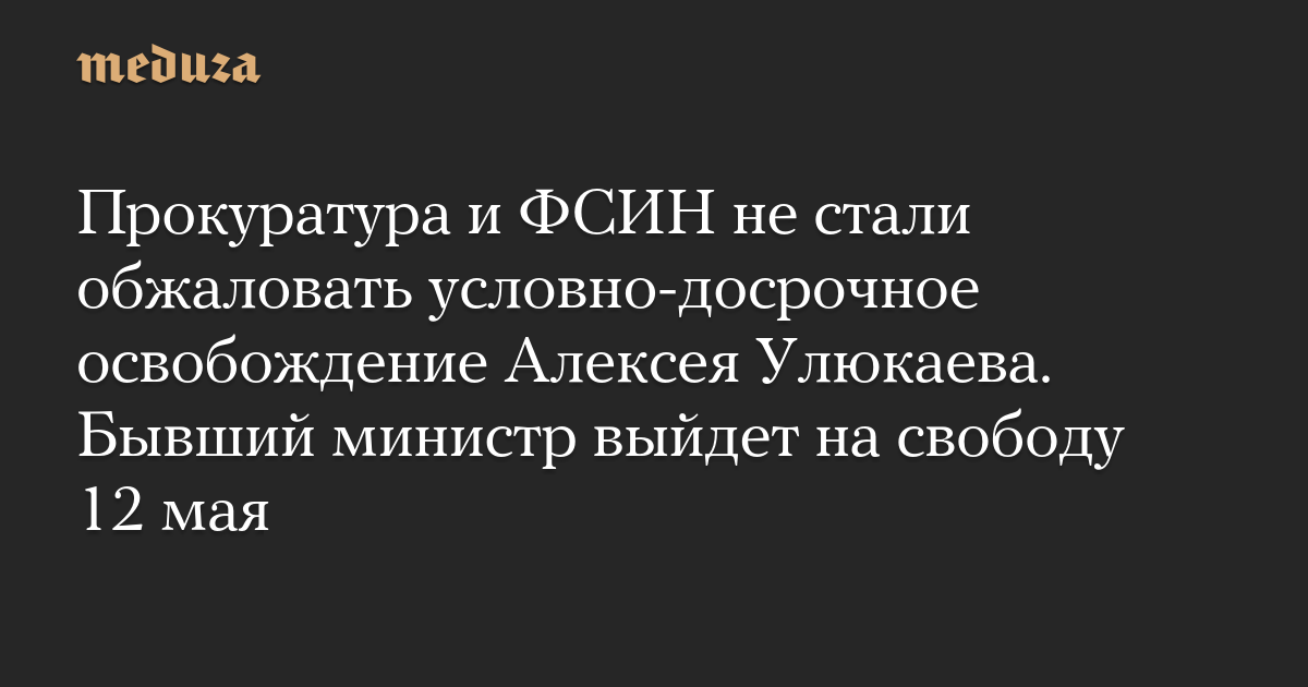 11 мая был последний день, когда можно было обжаловать решение об УДО, рассказали в пресс-службе суда. Так как этого не произошло, то решение об условно-досрочном освобождении вступит в законную силу, и Улюкаев 12 мая должен выйти на свободу.
