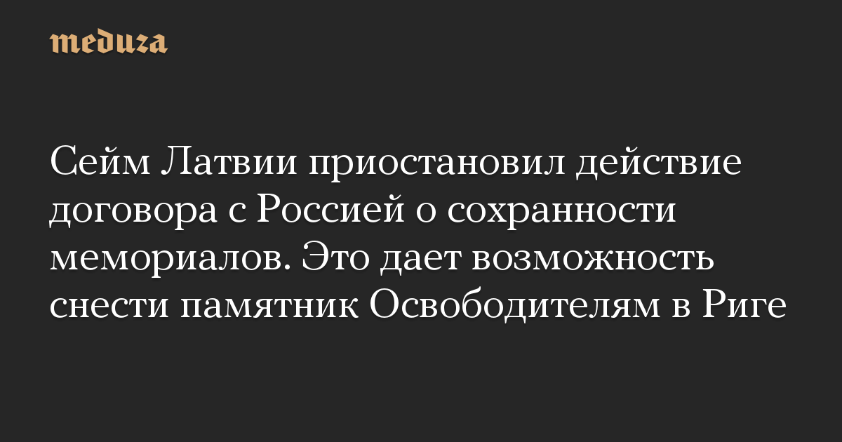 Сейм Латвии приостановил действие договора с Россией о сохранности мемориалов. Это дает возможность снести памятник Освободителям в Риге