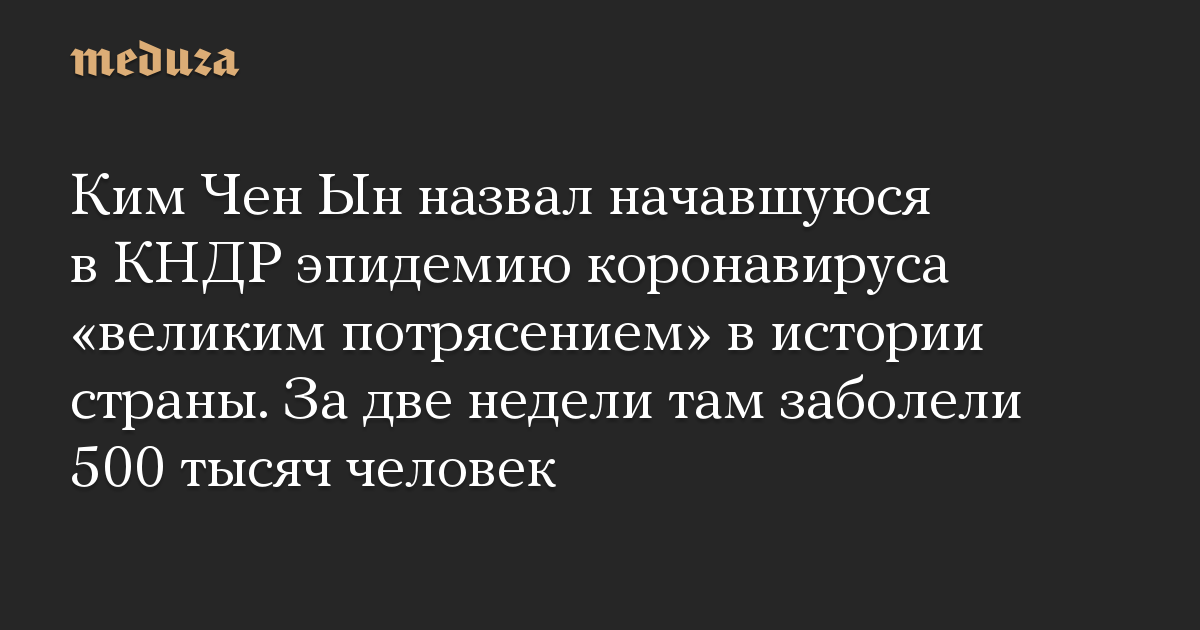 Ким Чен Ын назвал начавшуюся в КНДР эпидемию коронавируса «великим потрясением» в истории страны. За две недели там заболели 500 тысяч человек