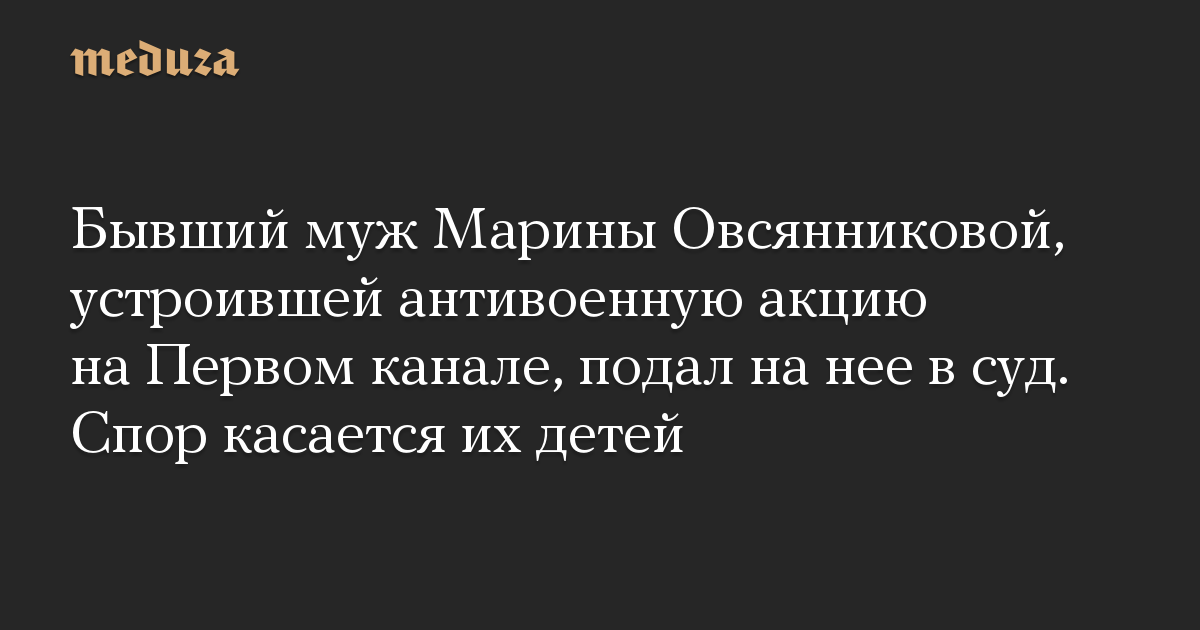Бывшая сотрудница Первого канала Марина Овсянникова, устроившая антивоенную акцию в эфире телеканала, сообщила журналу «Холод», что ее бывший супруг подал на нее в суд.