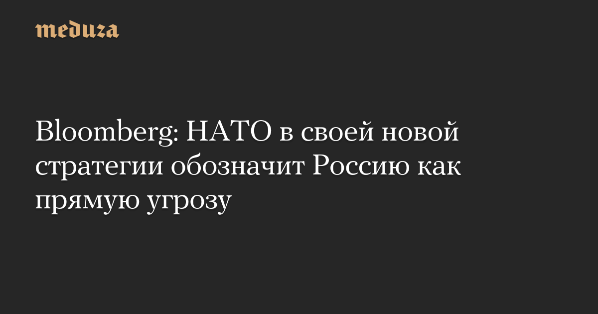 Союзники по НАТО в новой стратегической концепции собираются обозначить действия России как «прямую угрозу», сообщает Bloomberg, ссылаясь на слова источника в НАТО.