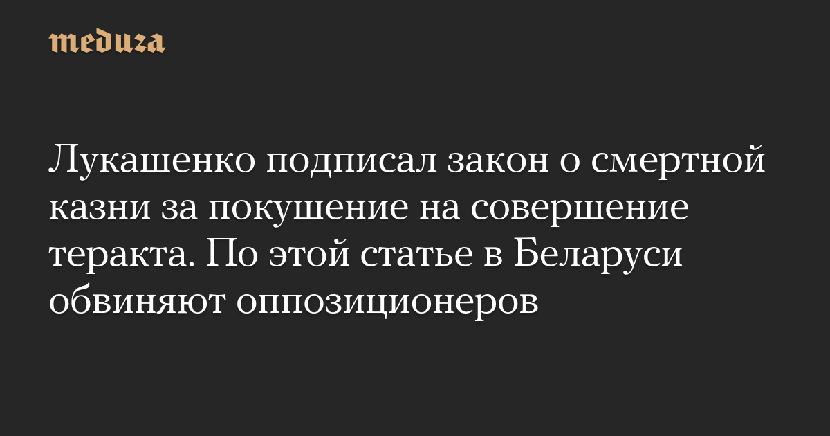 Лукашенко подписал закон о смертной казни за покушение на совершение теракта. По этой статье в Беларуси обвиняют оппозиционеров