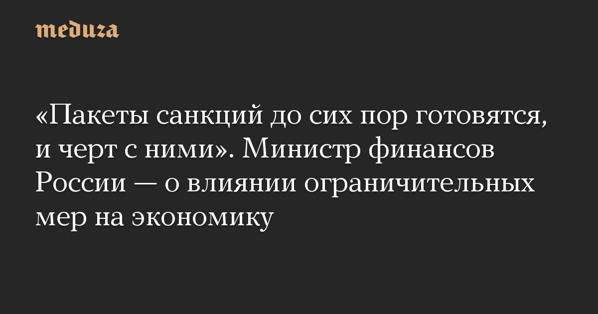 «Пакеты санкций до сих пор готовятся, и черт с ними». Министр финансов России — о влиянии ограничительных мер на экономику