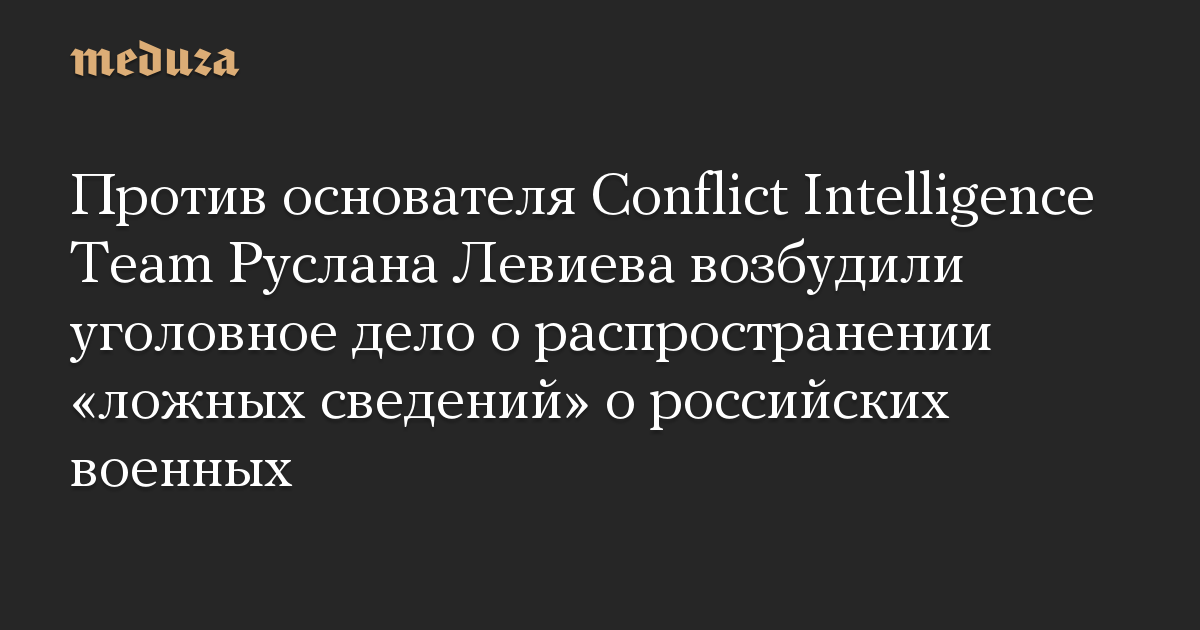 Против основателя Conflict Intelligence Team Руслана Левиева возбудили уголовное дело по статье о распространении «заведомо ложной информации» об использовании российских вооруженных сил.