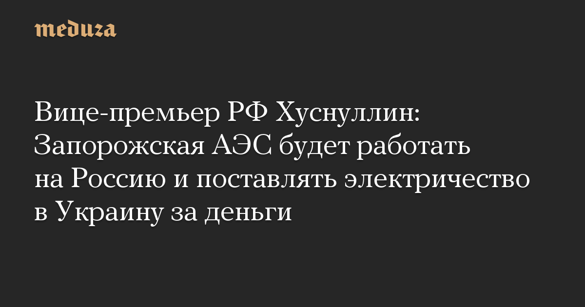 Вице-премьер РФ Хуснуллин: Запорожская АЭС будет работать на Россию и поставлять электричество в Украину за деньги
