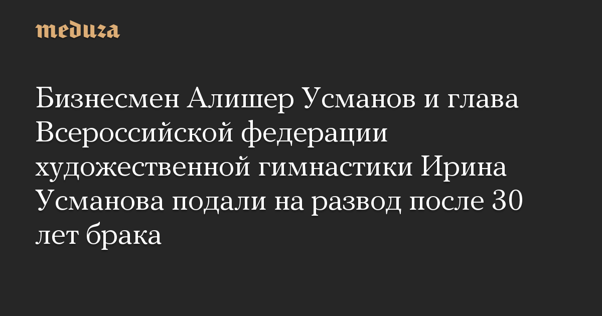 Основной акционер группы USM Алишер Усманов и президент Всероссийской федерации художественной гимнастики Ирина Усманова-Винер оформляют развод.