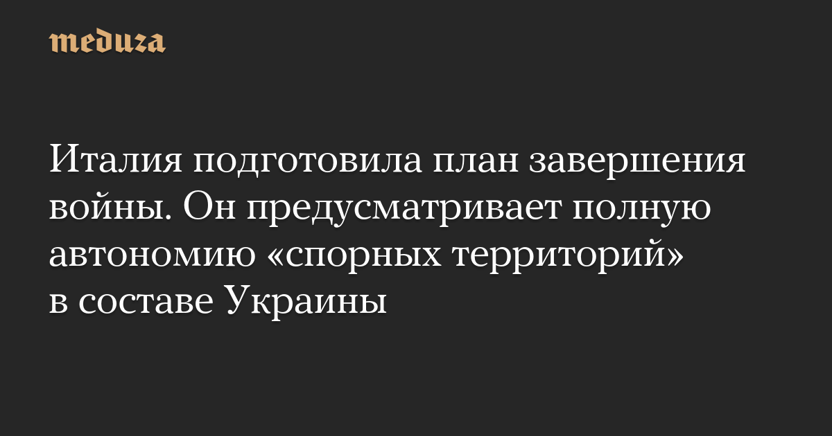 Италия подготовила план завершения войны. Он предусматривает полную автономию «спорных территорий» в составе Украины