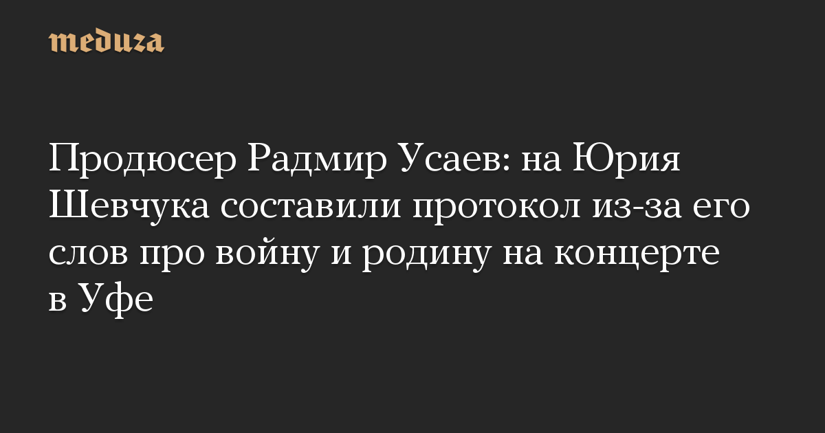 Продюсер Радмир Усаев: на Юрия Шевчука составили протокол из-за его слов про войну и родину на концерте в Уфе