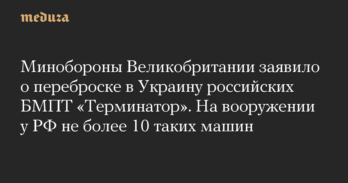 У российской армии всего не более 10 БМПТ «Терминатор», «они вряд ли окажут существенное влияние на кампанию», отмечает Минобороны Великобритании.