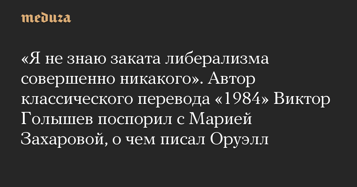 «Я не знаю заката либерализма совершенно никакого». Автор классического перевода «1984» Виктор Голышев поспорил с Марией Захаровой, о чем писал Оруэлл