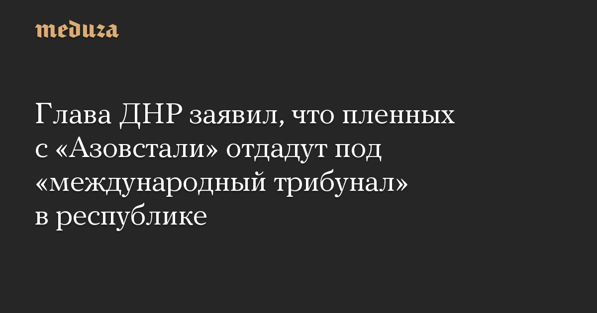 Глава ДНР заявил, что пленных с «Азовстали» отдадут под «международный трибунал» в республике
