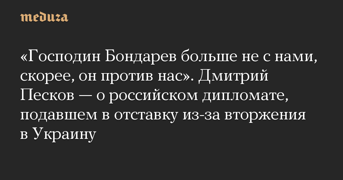 «Господин Бондарев больше не с нами, скорее, он против нас». Дмитрий Песков — о российском дипломате, подавшем в отставку из-за вторжения в Украину