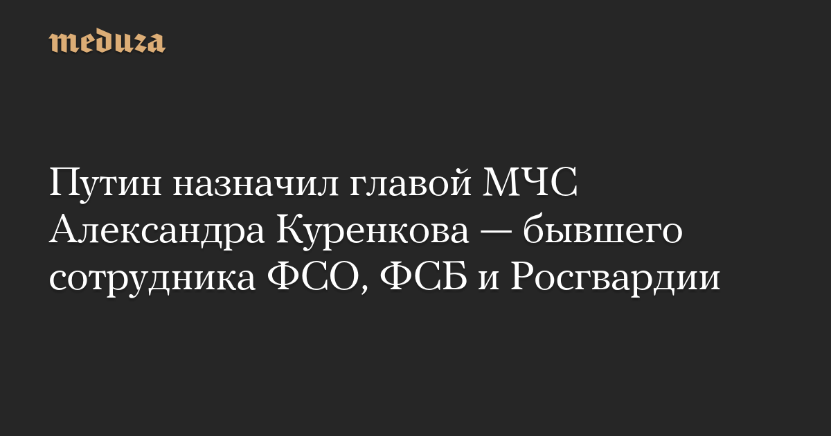 Путин назначил главой МЧС Александра Куренкова — бывшего сотрудника ФСО, ФСБ и Росгвардии