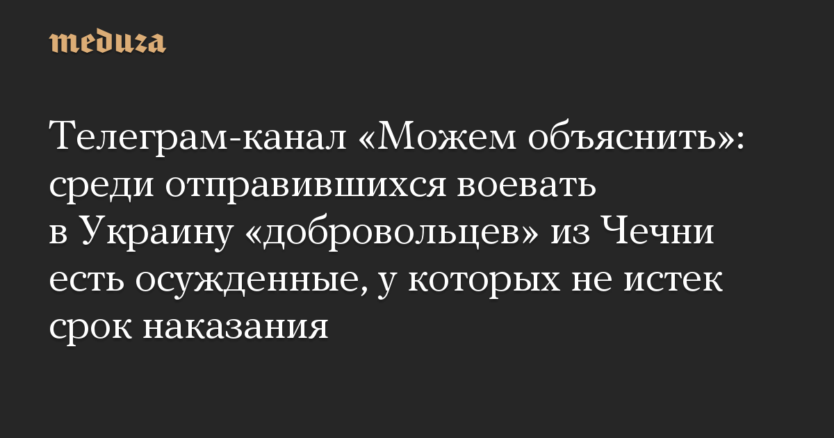 Телеграм-канал «Можем объяснить»: среди отправившихся воевать в Украину «добровольцев» из Чечни есть осужденные, у которых не истек срок наказания