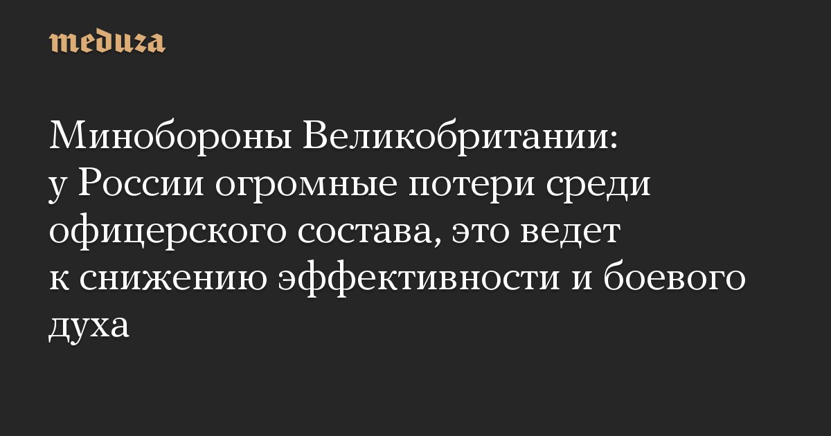 Российские войска понесли «огромные потери» среди офицеров младшего и среднего звена в ходе войны против Украины, говорится в ежедневной сводке министерства обороны Великобритании.