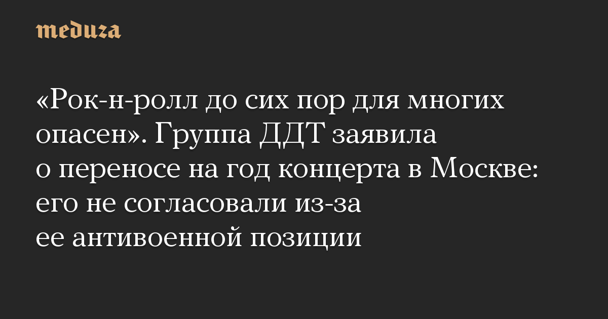 «Рок-н-ролл до сих пор для многих опасен». Группа ДДТ заявила о переносе на год концерта в Москве: его не согласовали из-за ее антивоенной позиции