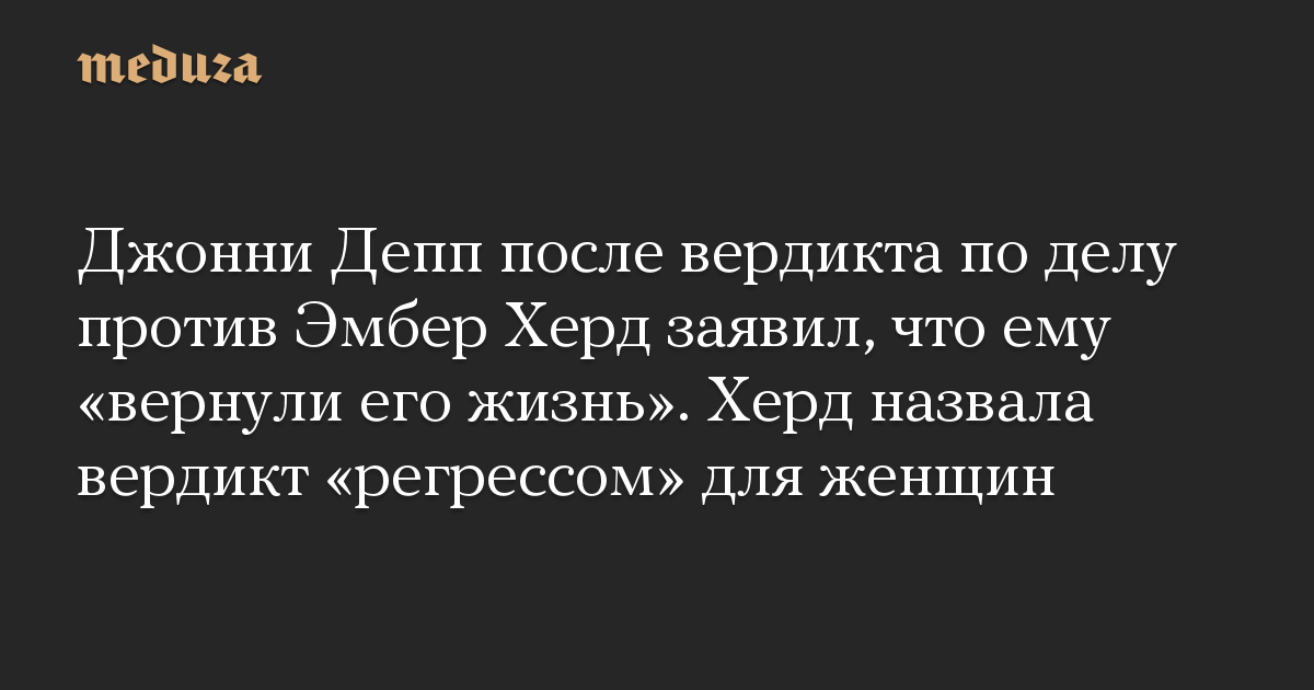 Джонни Депп после вердикта по делу против Эмбер Херд заявил, что ему «вернули его жизнь». Херд назвала вердикт «регрессом» для женщин