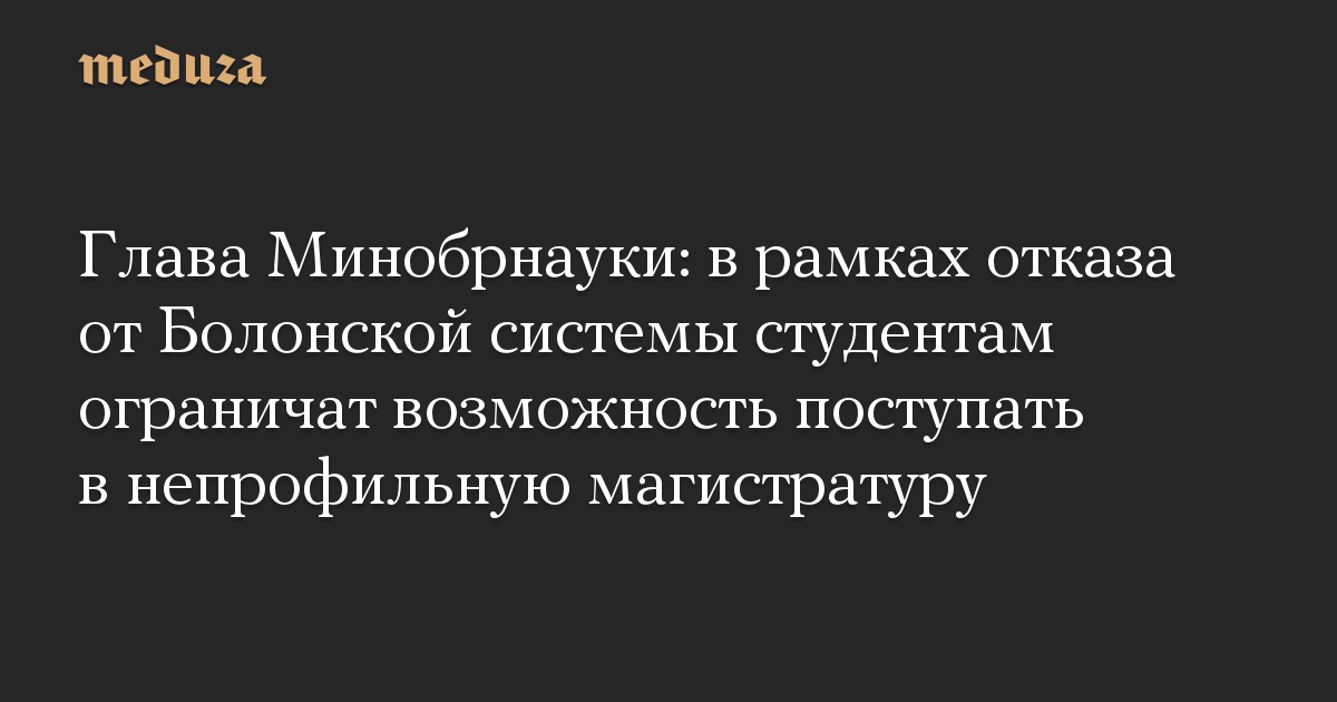 В рамках отказа от Болонской системы высшего образования в России останутся бакалавриат и магистратура, но для студентов ограничат возможность поступать в непрофильную магистратуру. Об этом «Коммерсанту» заявил министр науки и высшего образования РФ Валерий Фальков.